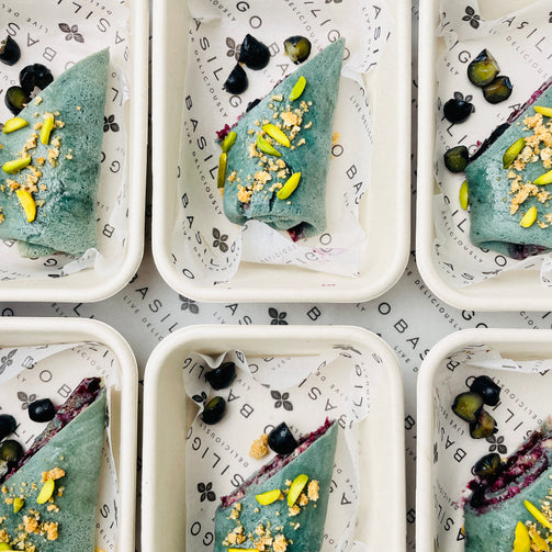 Satisfy your cravings with our Mini Blueberry Crepes, made fresh dairy and gluten-free! Indulge in the tangy taste of real blueberries wrapped in delicate crepes. Bite-sized and bursting with flavor, these crepes are perfect for a quick snack or a delectable dessert. Get ready to say "yum" with every bite!