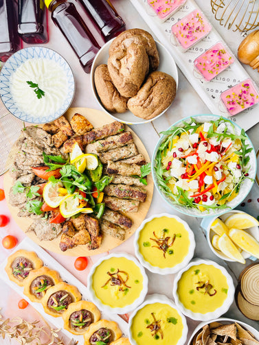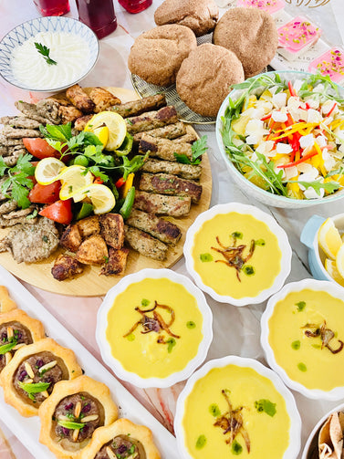 Get ready to experience a feast like no other this Ramadan with our Ramadan Iftar Package! Indulge in our mouth-watering Arabic Mix Grill Platter and Gluten Free Arabic Bread, followed by our flavorful Gluten Free Laham Bin Ajin. Warm up with a bowl of our Middle Eastern Lentil Soup and finish off with our delectable Arugula & Feta Salad and Mohalabia Rose Jelly.