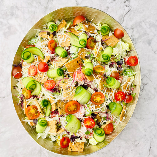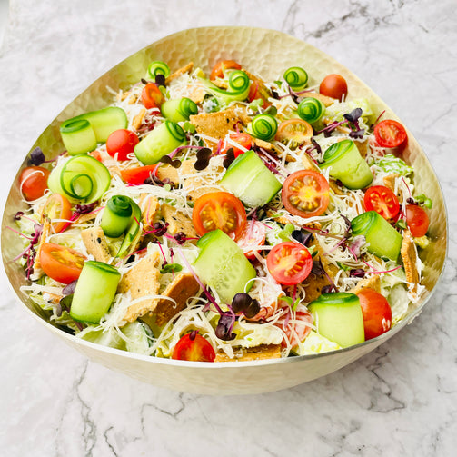 Get your greens with a twist! Our Veg Caesar Salad is a classic with a playful twist - no anchovies here! Bursting with fresh and crisp veggies, this medium bowl is perfect for a satisfying meal.